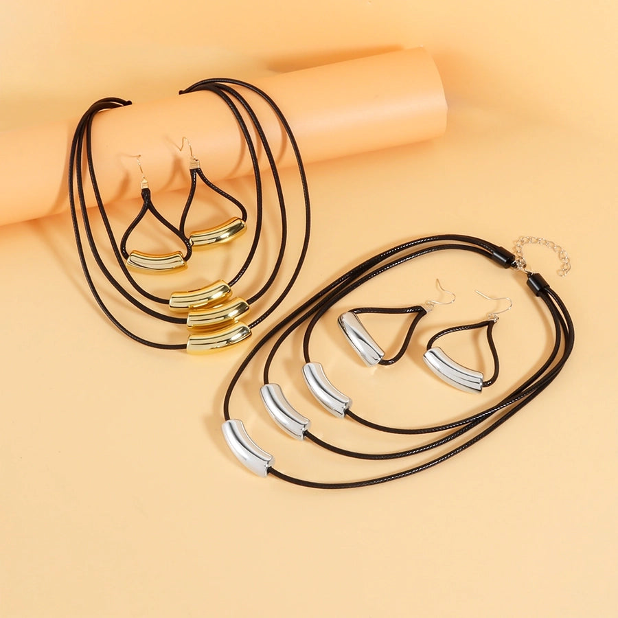 Retro Punk Geometric Arylic rope Woven Chain Layered Necklaces