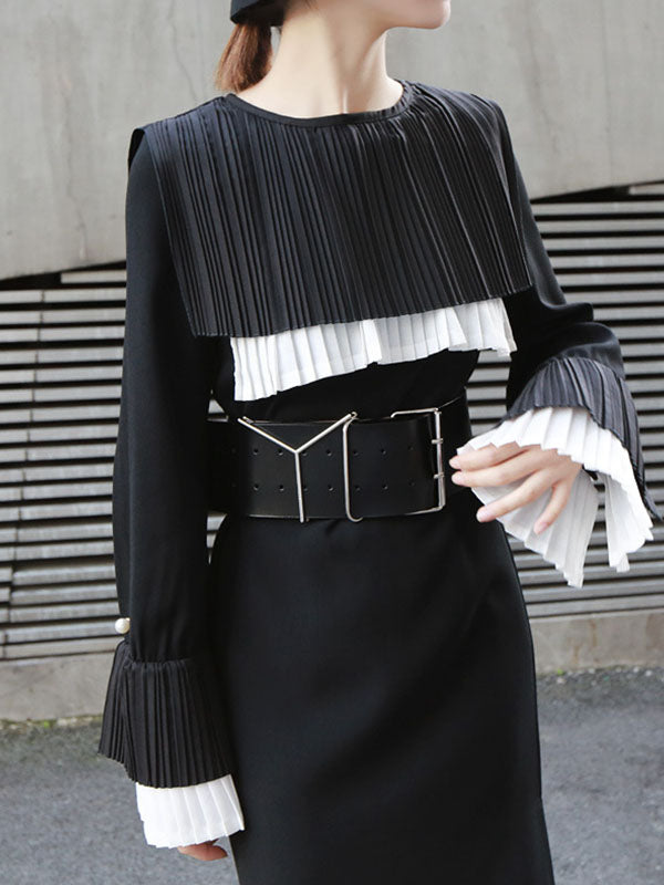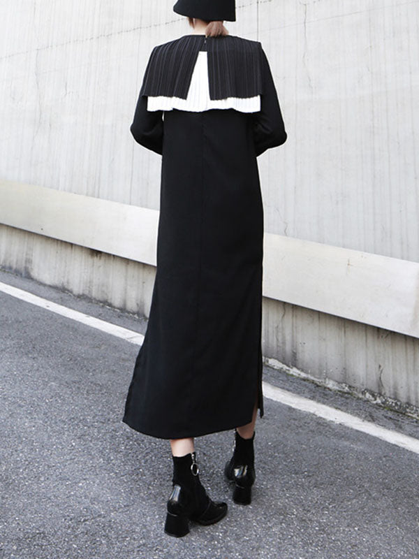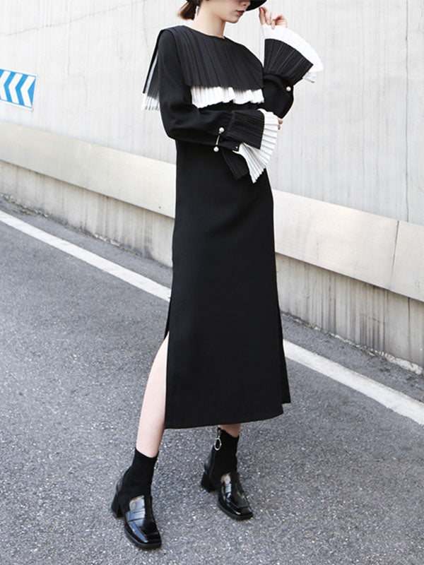RETRO SPLIT-SIDE RUFFLED PLEATED LONG DRESS