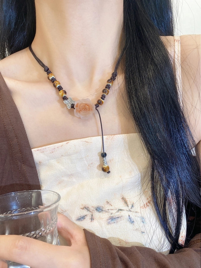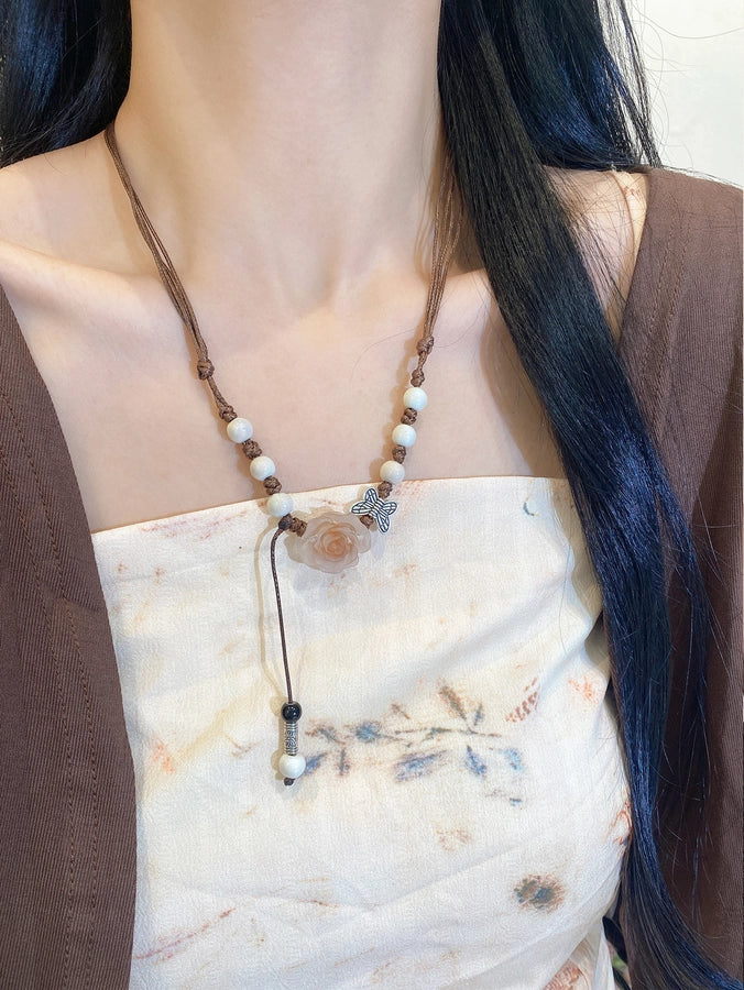 Retro Sweet Flower Synthetic Resin Fabric ceramics Pendant Necklaces