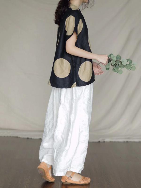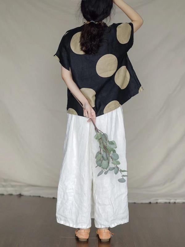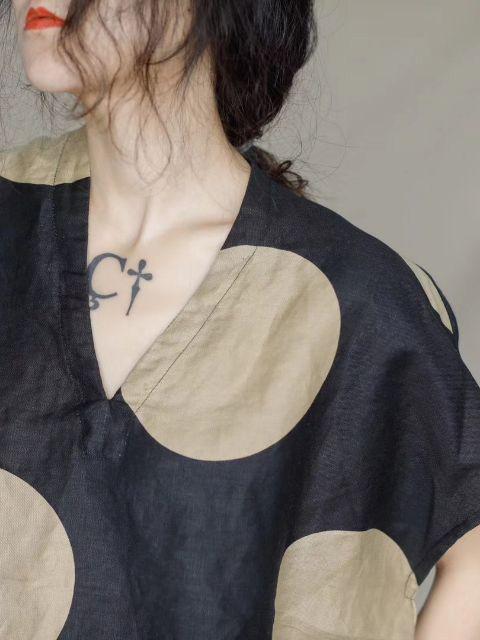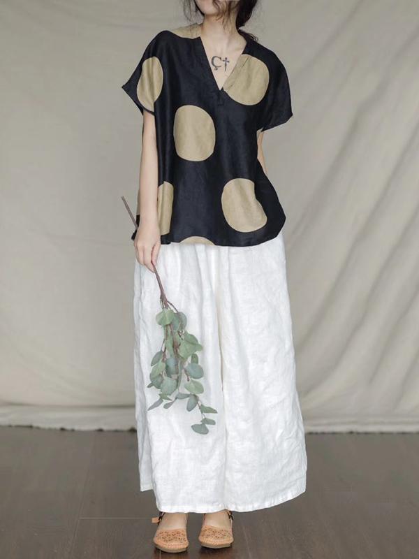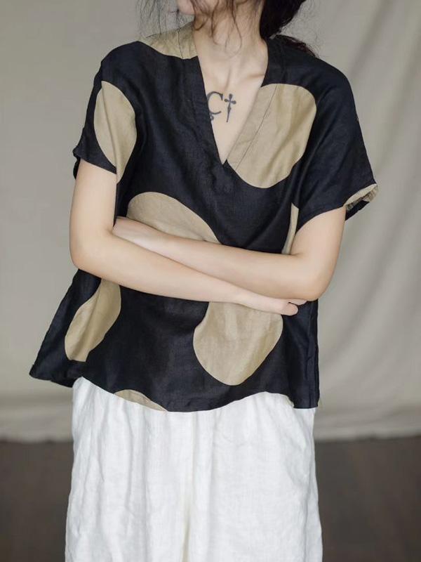 Retro V-neck Polka-dot T-shirt