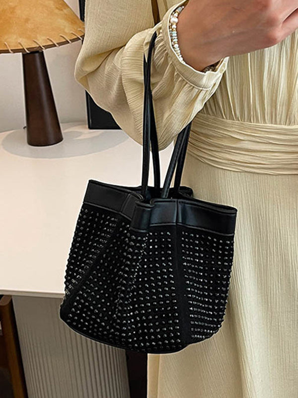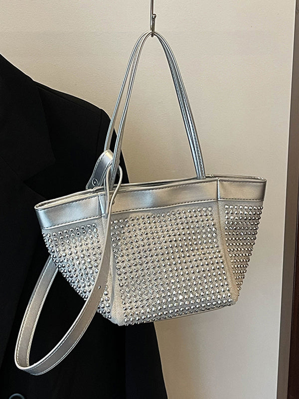 Rhine Stones Shiny Split-Joint Zipper Crossbody Bags Handbags