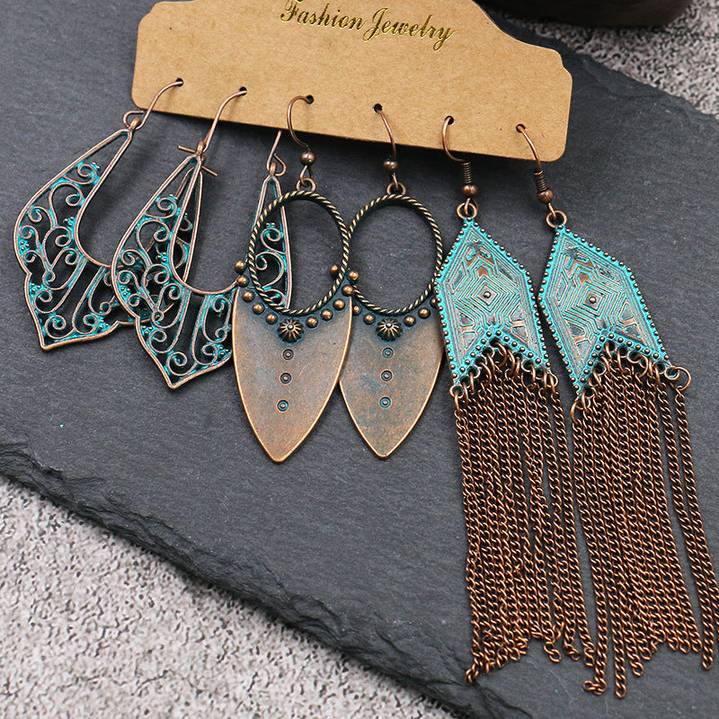 Round metal tassel retro earrings set combination