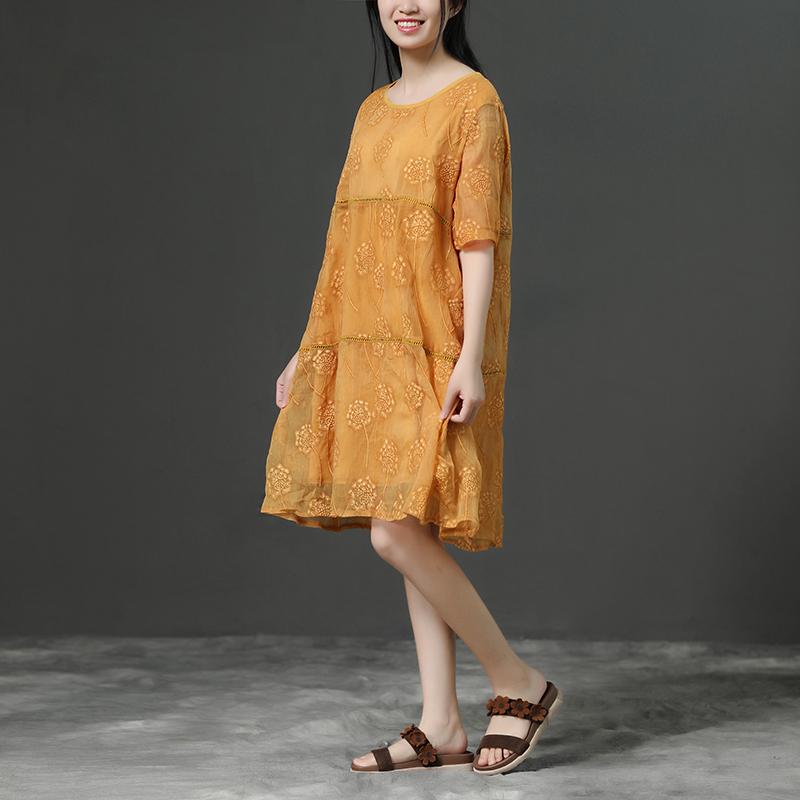 Round Neck Commuter Yellow Summer Dress
