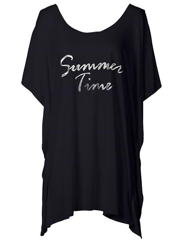 Round Neck Loose Cotton-Blend Alphabet Mini Dress T-Shirt