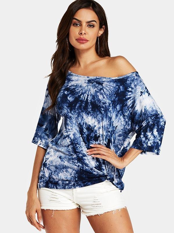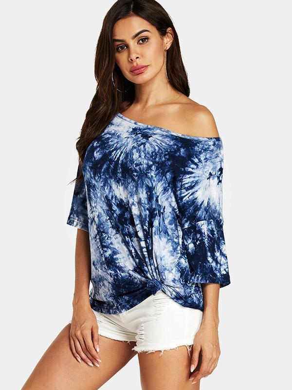 Round-Neck Strapless Printed Casual T-Shirt