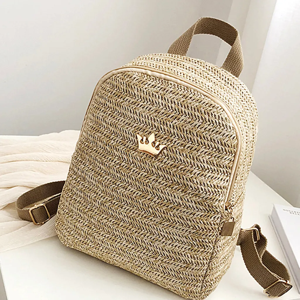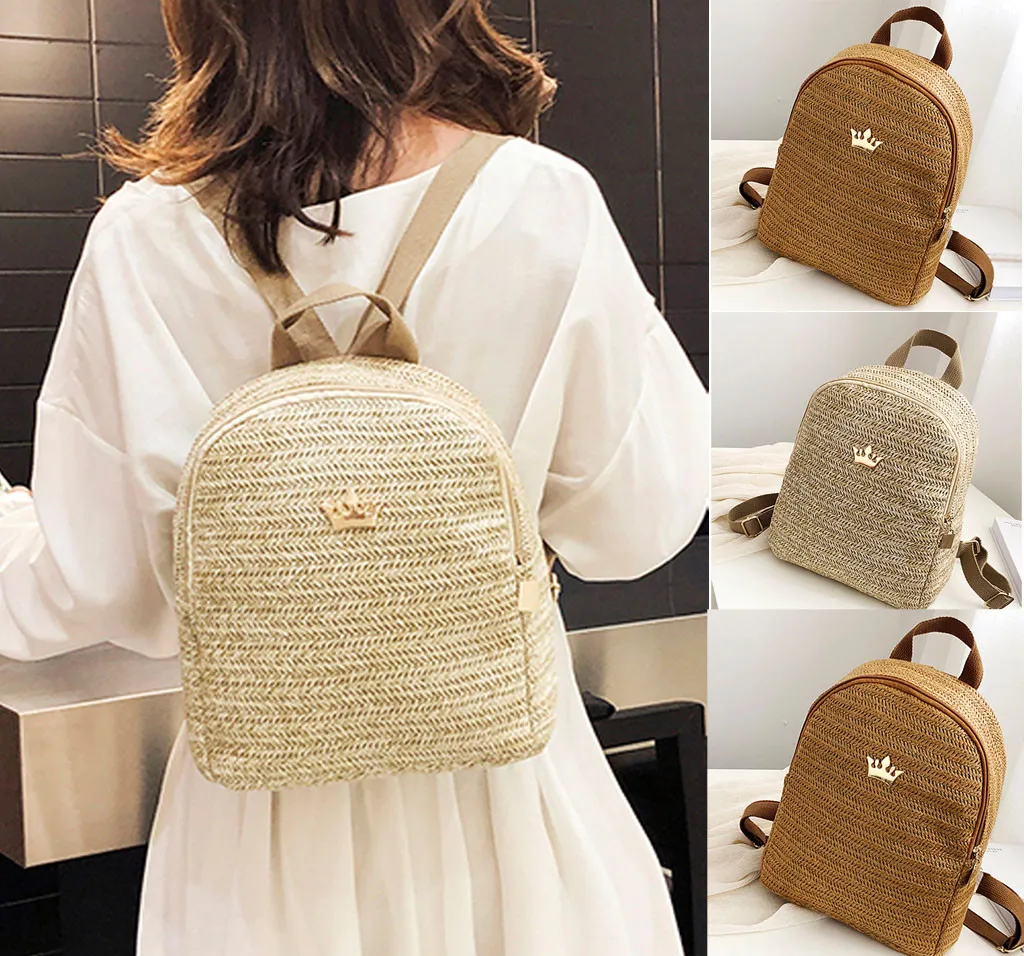Round Softback Straw Woven Beach Women Backpacks