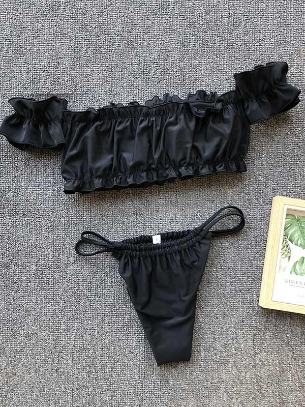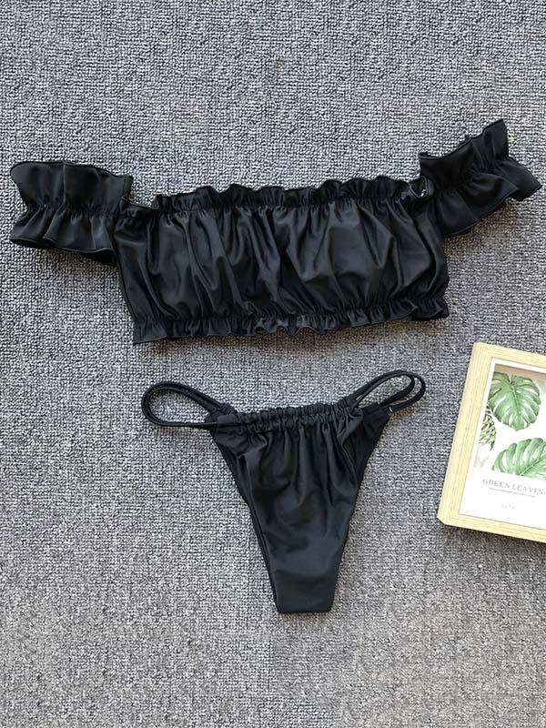Ruched Off-the-shoulder Bandeau Bikini Swimsuit