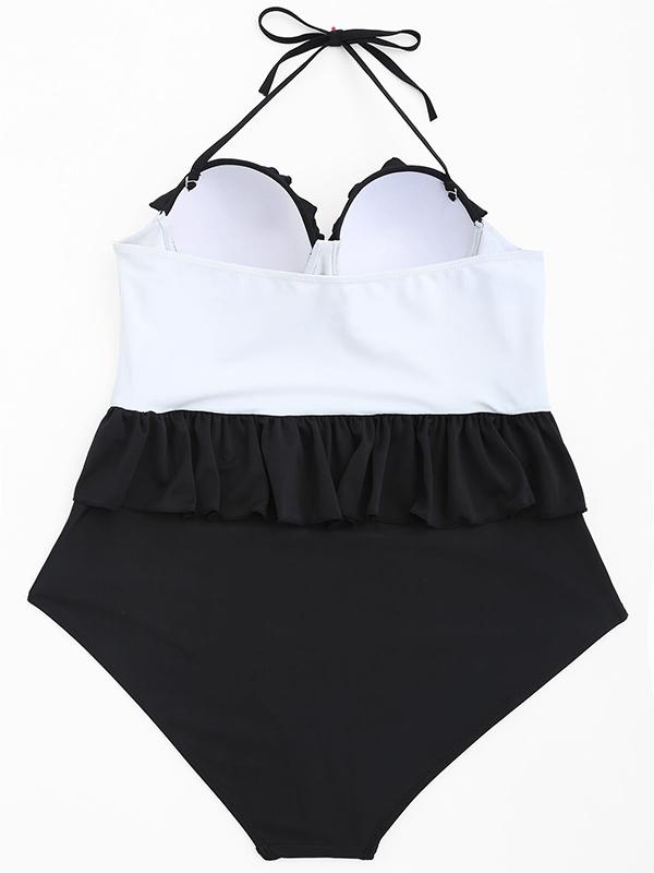 Ruffle Contrast Plus Size One Piece Swimsuit