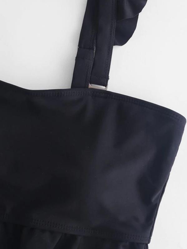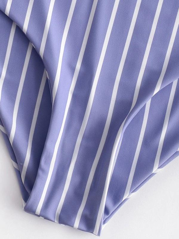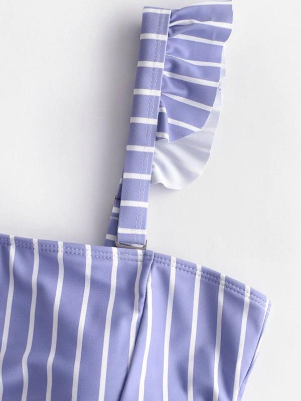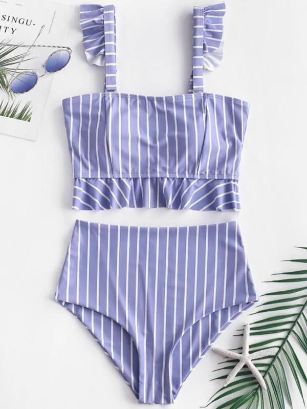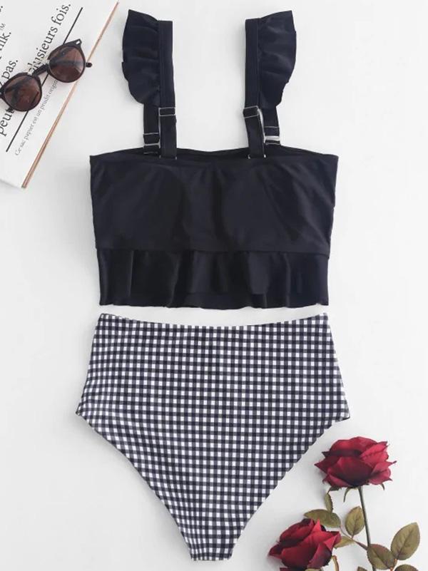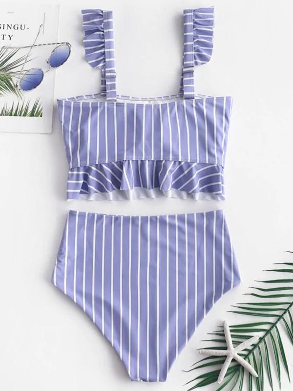Ruffle High Waisted Stripe Plaid Bikini Swimsuit