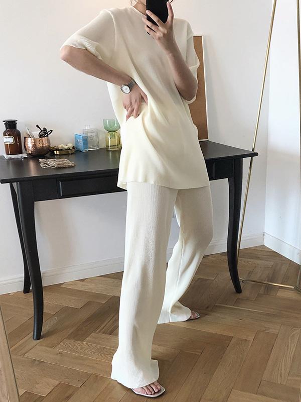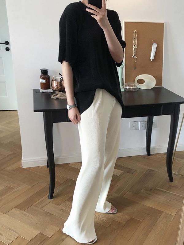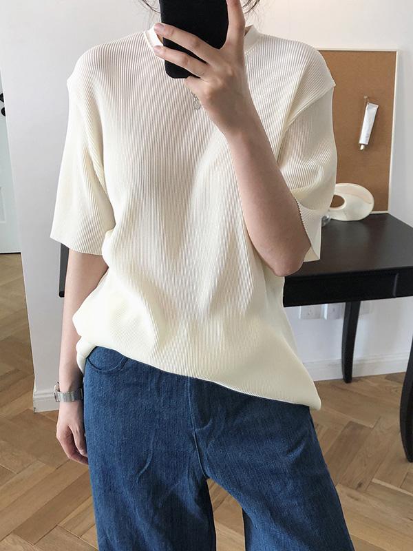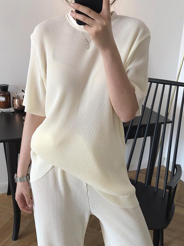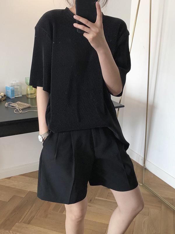 Ruffled Elastic Loose Solid T-Shirt