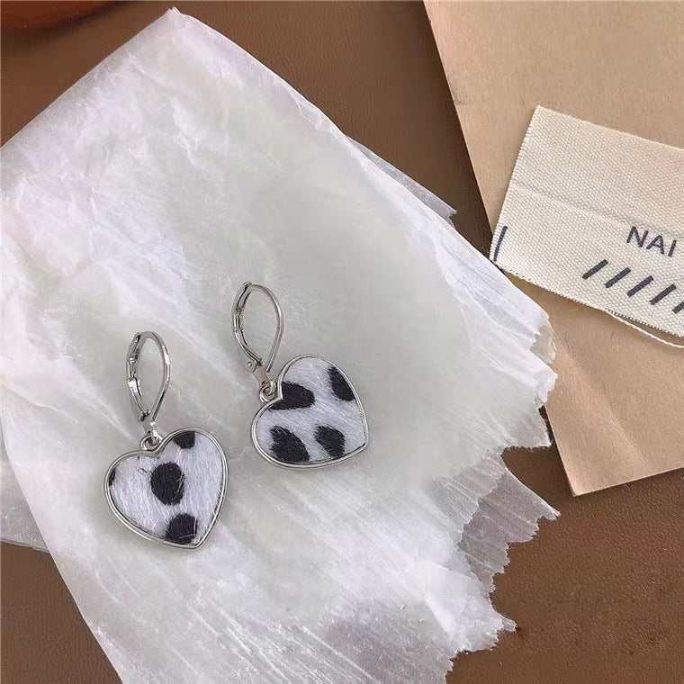 S925 Silver Needle Cow Dot Love Vintage Earrings