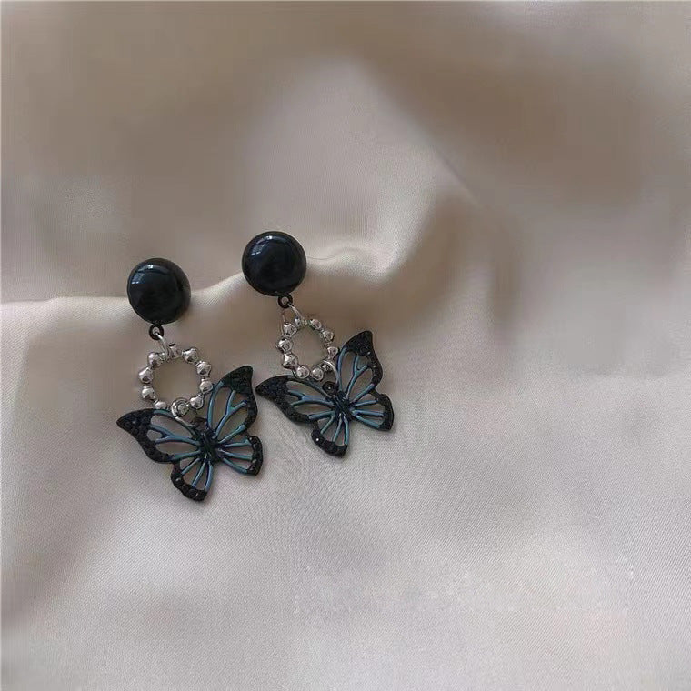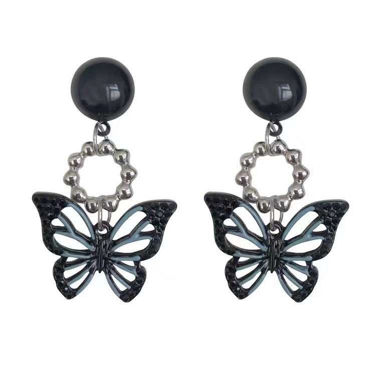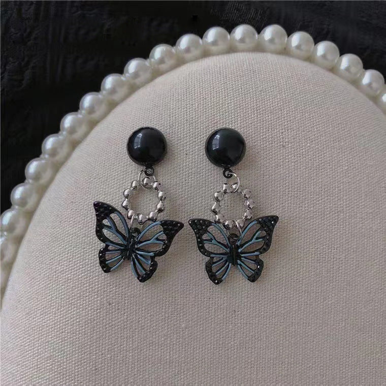 S925 Silver Needle Dark Hollow Butterfly Earrings