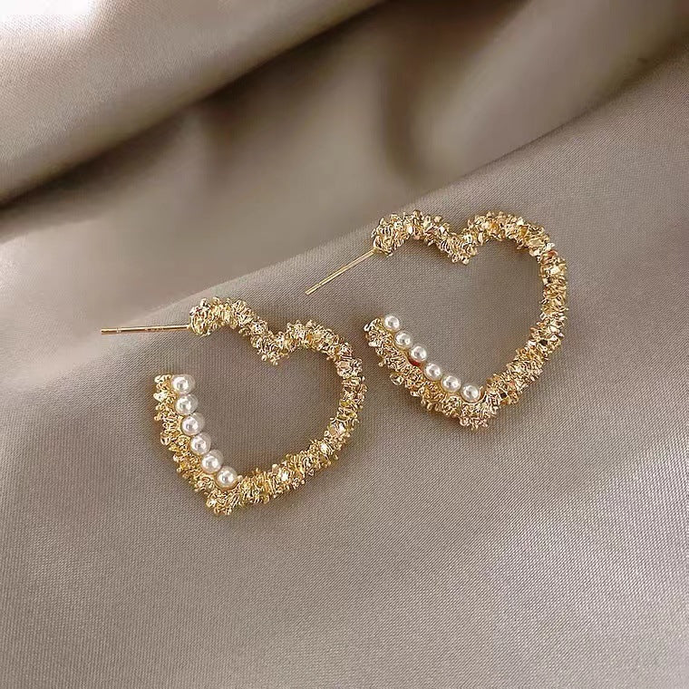 S925 Silver Needle Fashion Love Pearl Delicate C-shaped Earrings