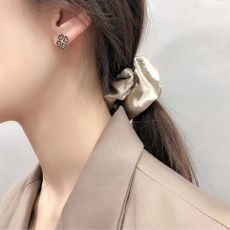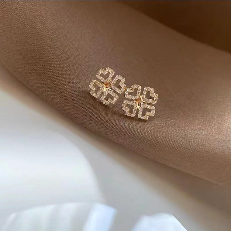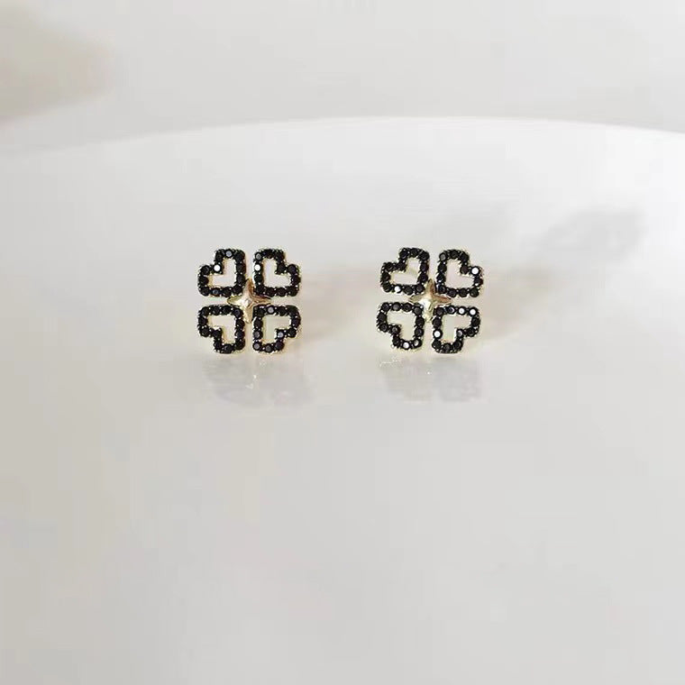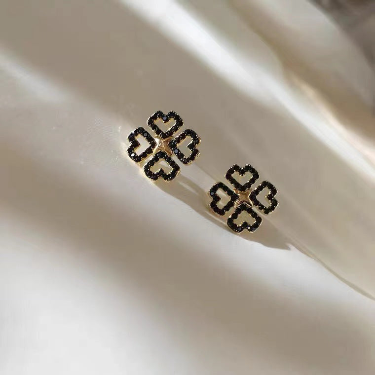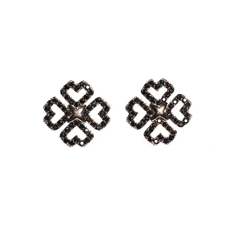 S925 silver needle hollowed-out four-leaf clover vintage earrings