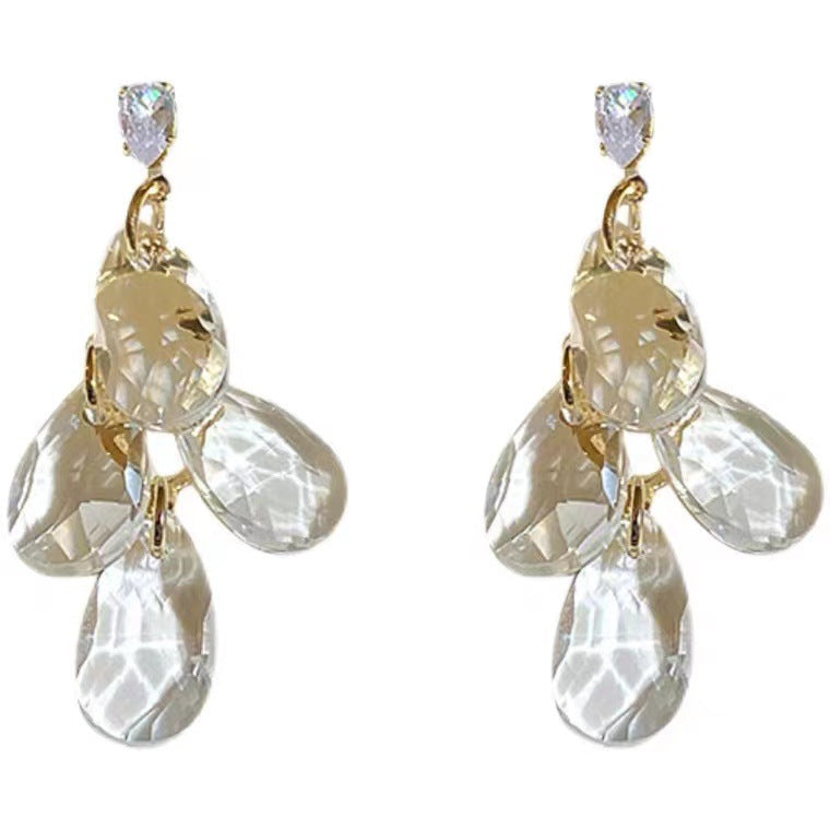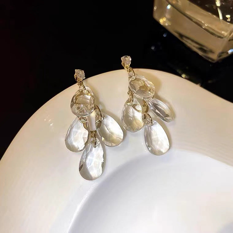 S925 silver needle Japanese and Korean temperament geometric transparent crystal earrings