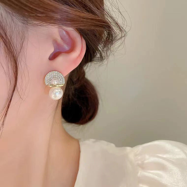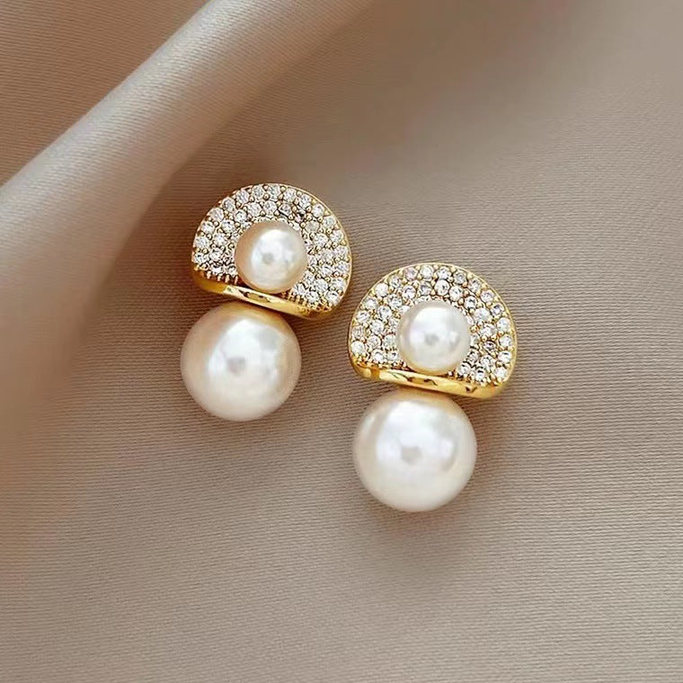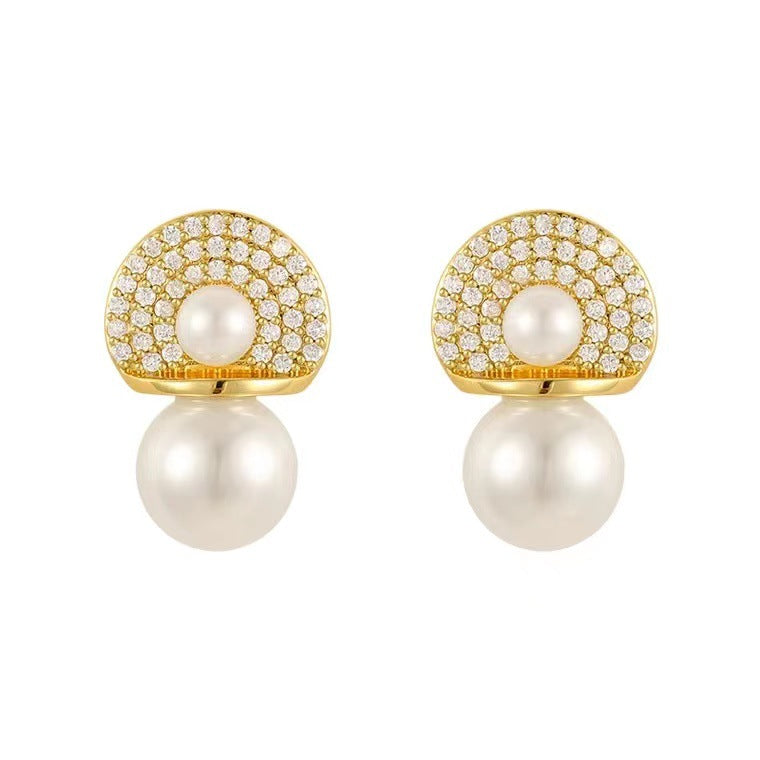 S925 Silver Needle Light Luxury Diamond Pearl Vintage Earrings