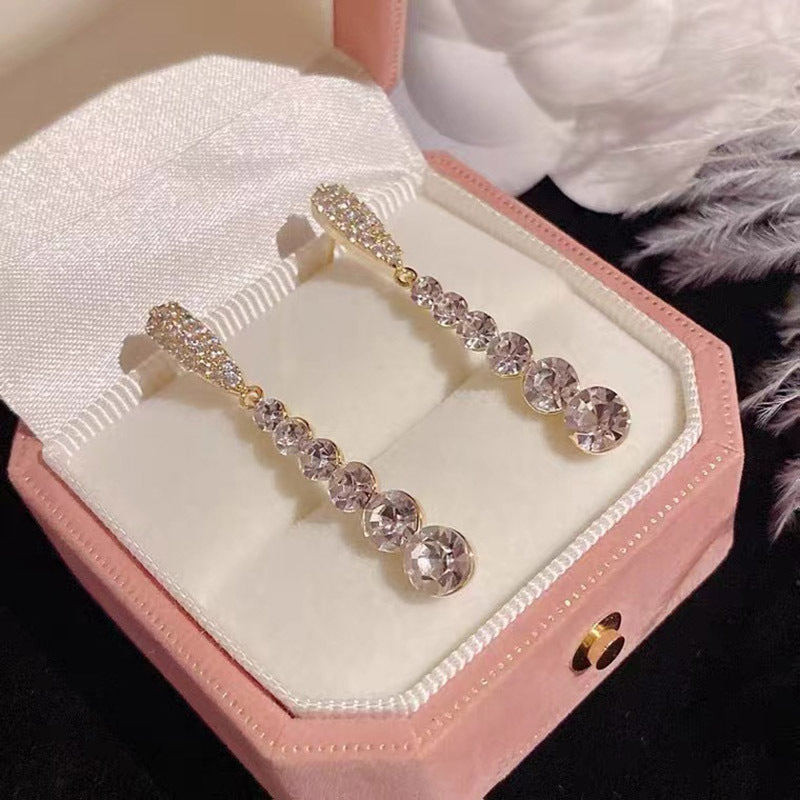 S925 Silver Needle Light Luxury Retro Long Drilled Drop Earrings