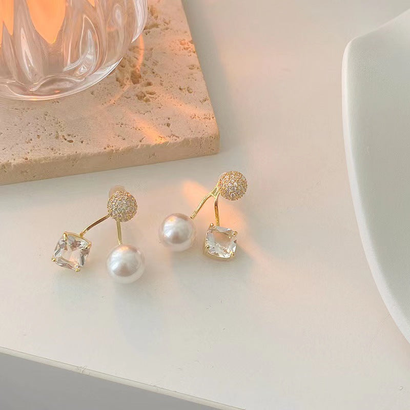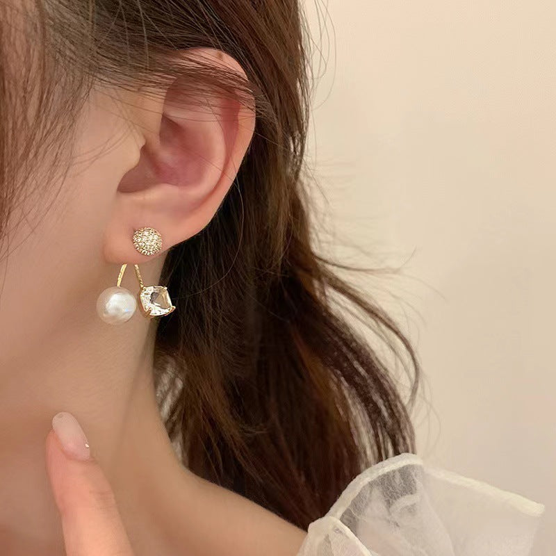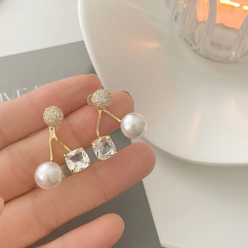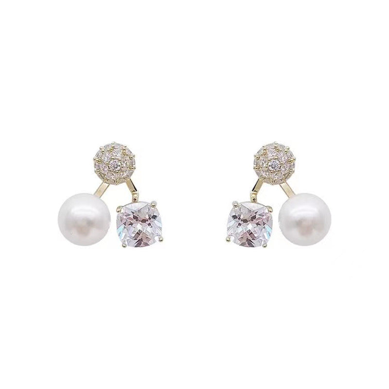 S925 silver needle micro-set rhinestone pearl earrings
