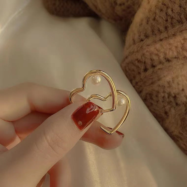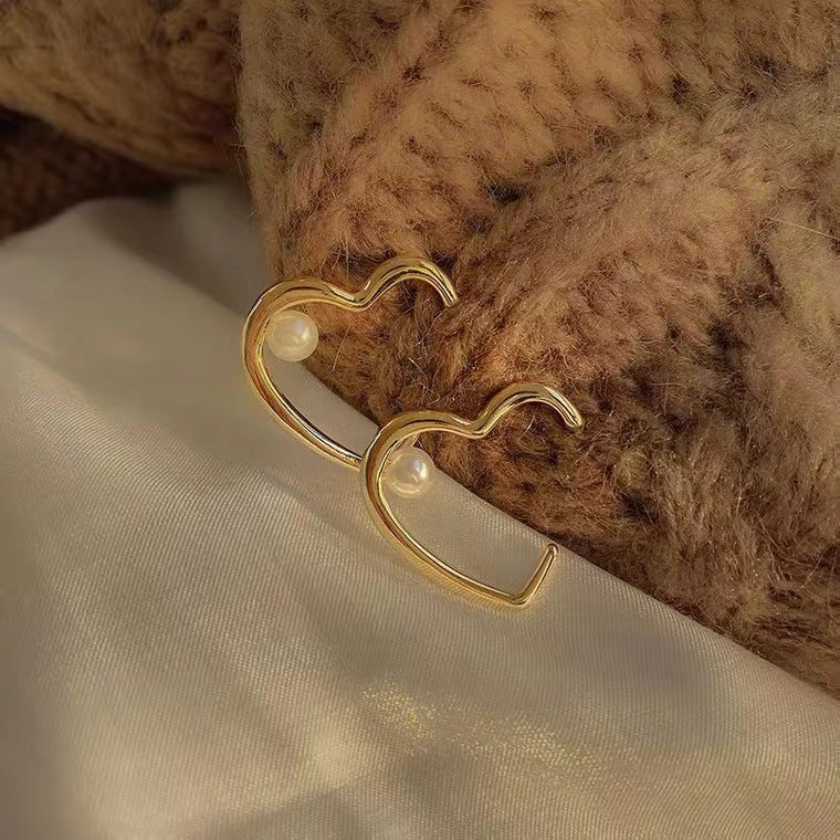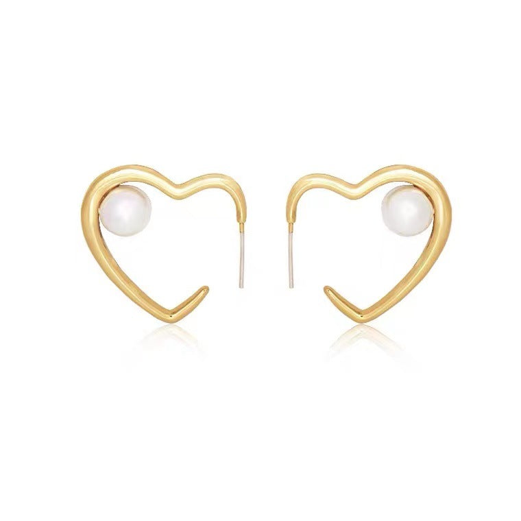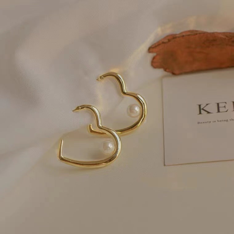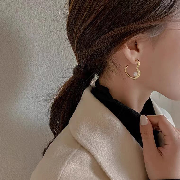 S925 Silver Needle Pearl Heart Geometric Heart Earrings