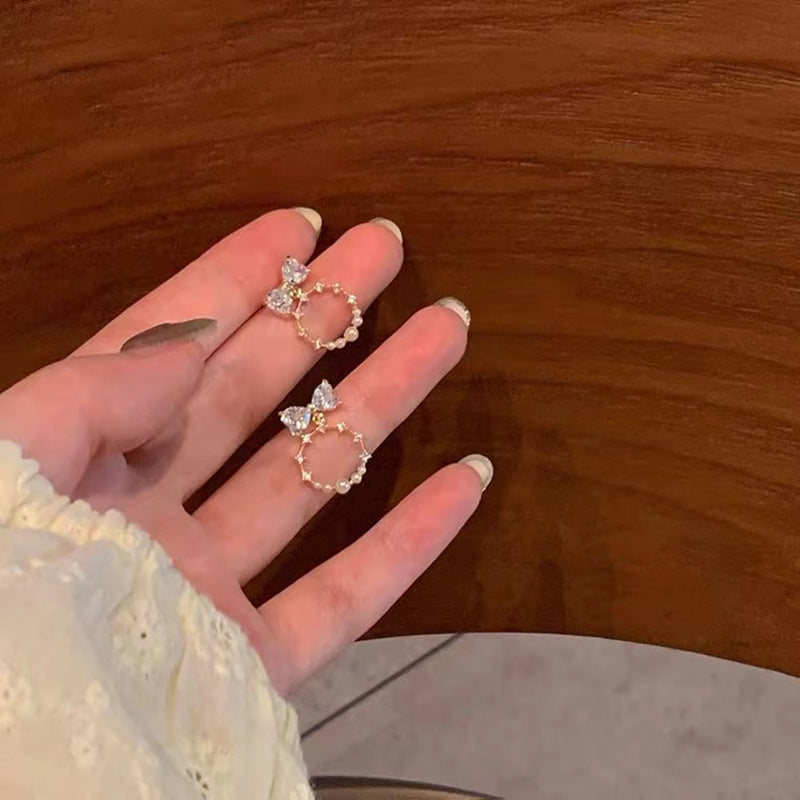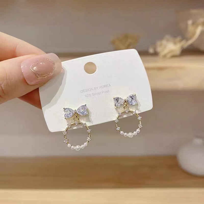S925 silver needle summer bow pearl earrings