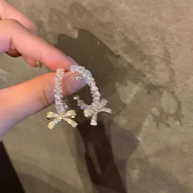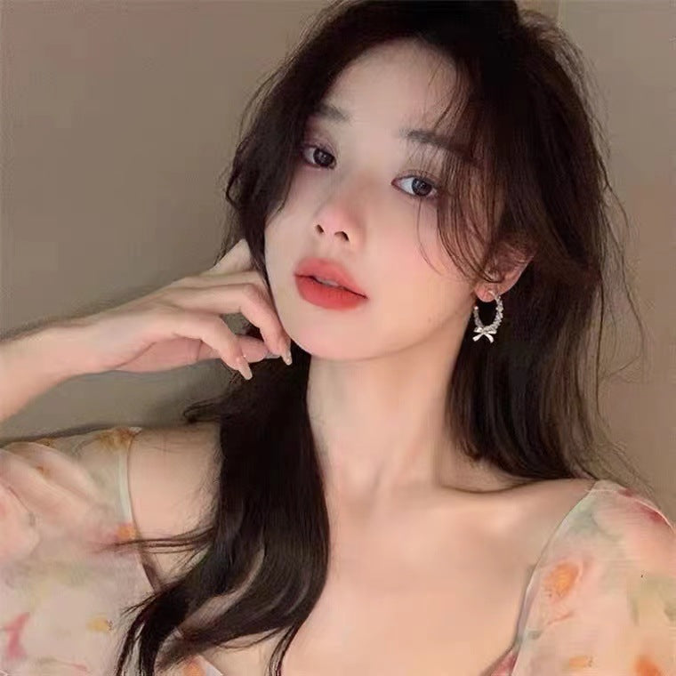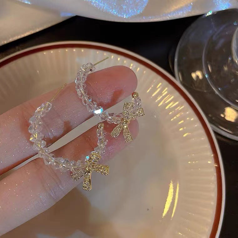 S925 Silver Needle Super Fairy Bow Crystal Beaded Earrings