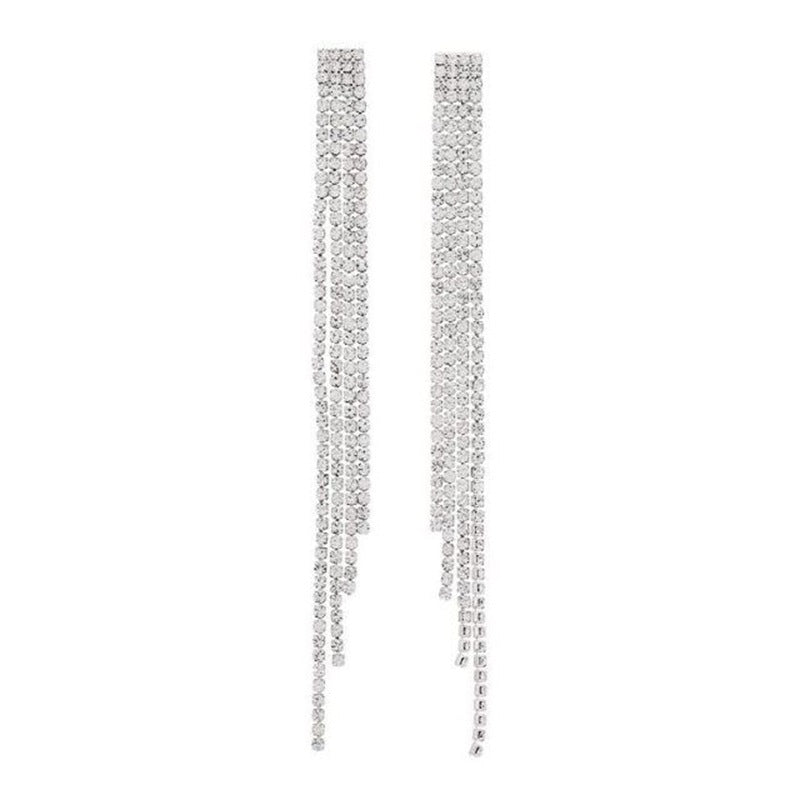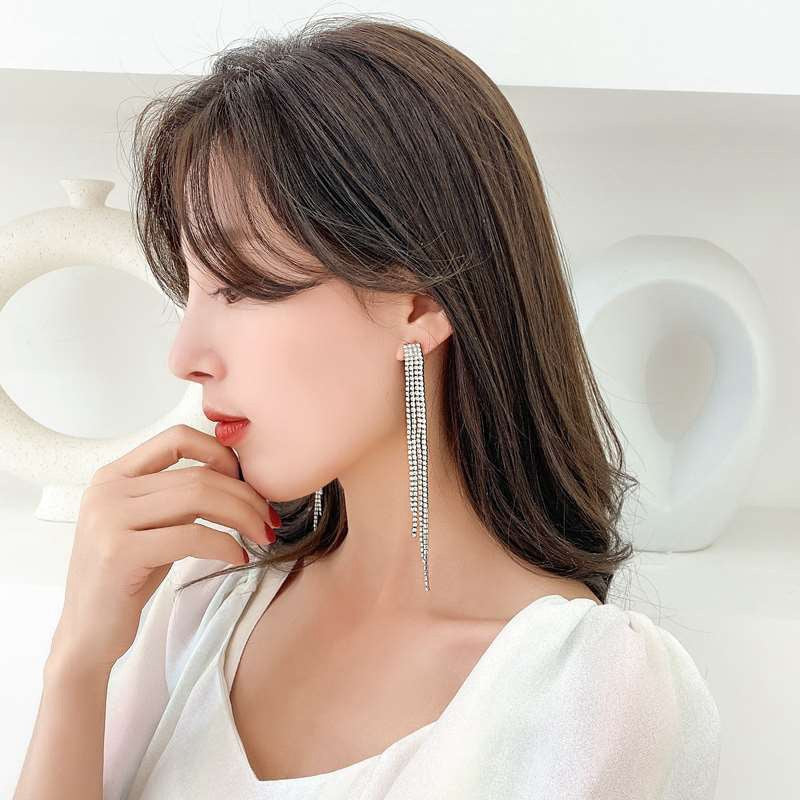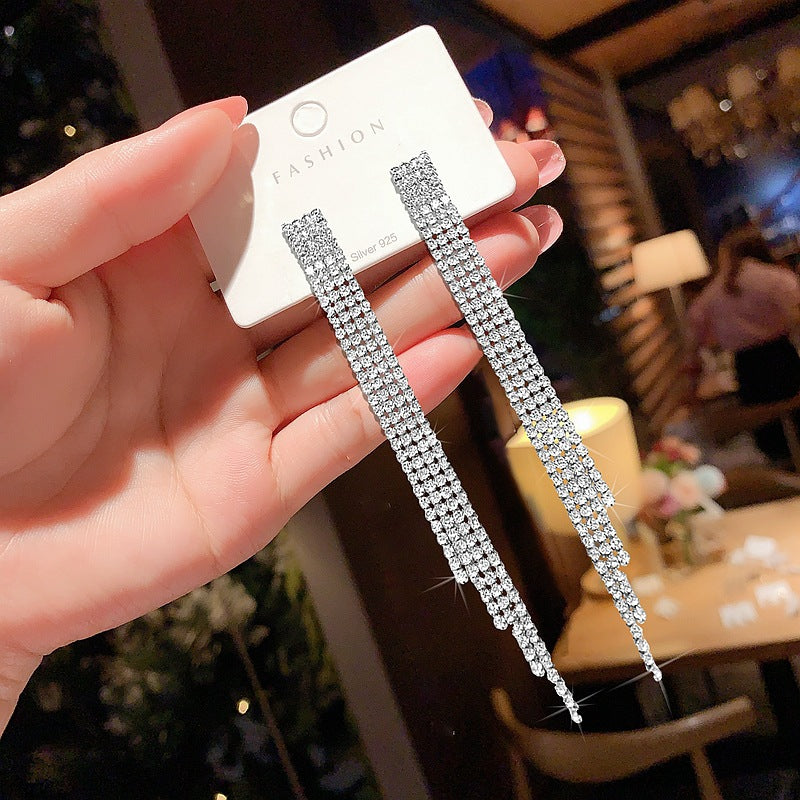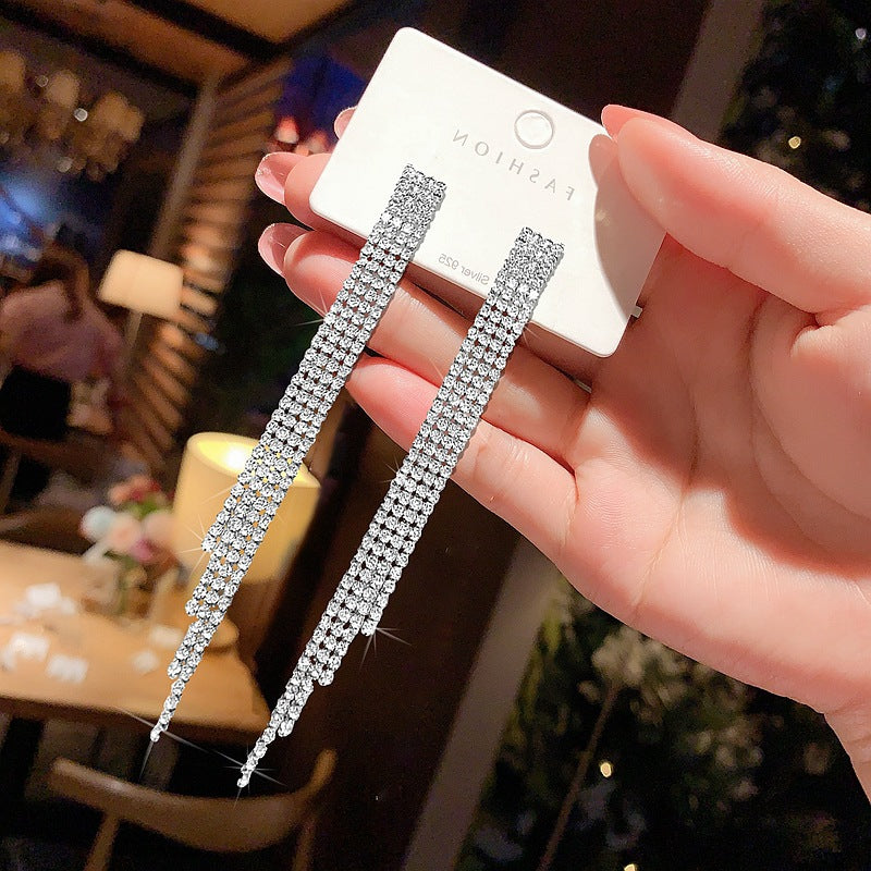 S925 silver needle ultra-flash rhinestone tassel earrings