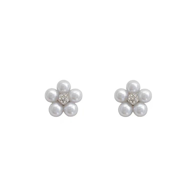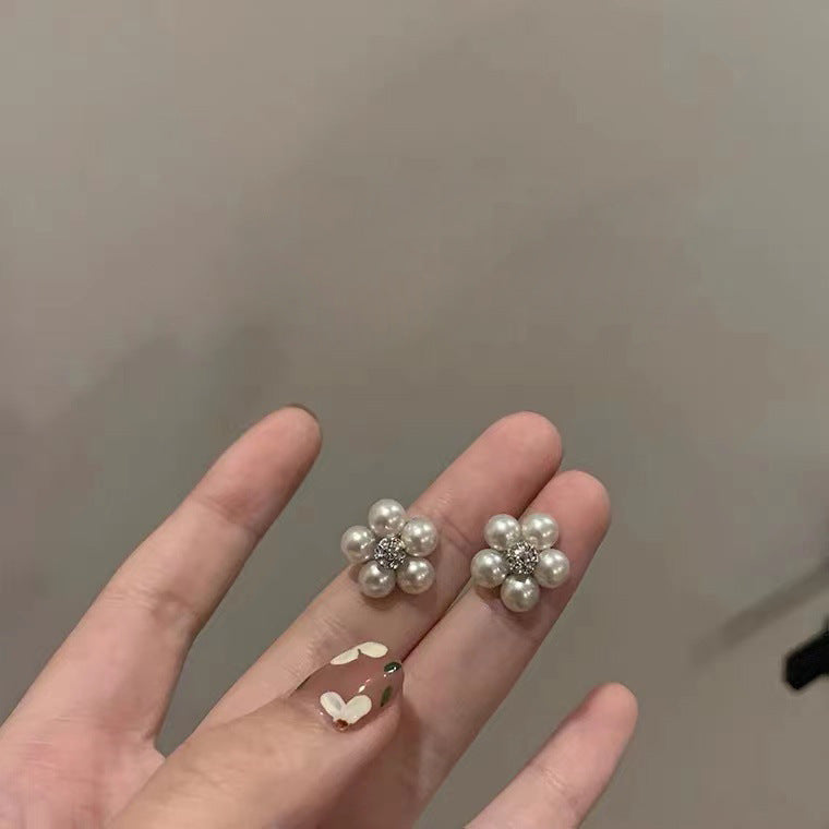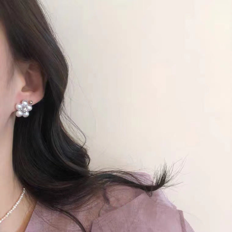 S925 Silver Needle Versatile Pearl Flower Earrings