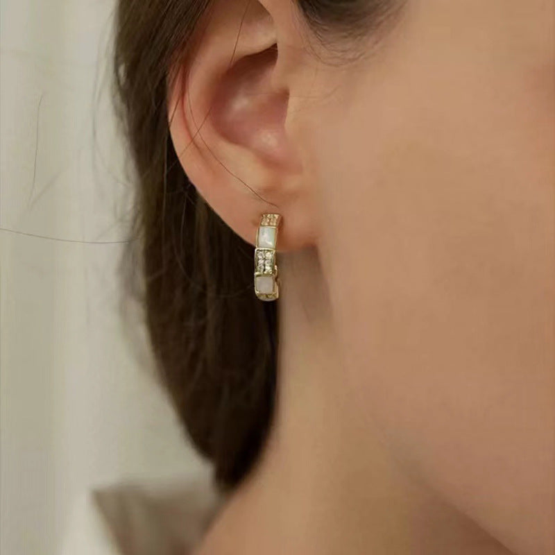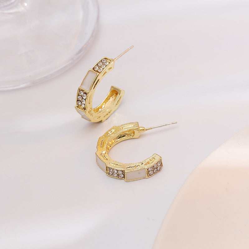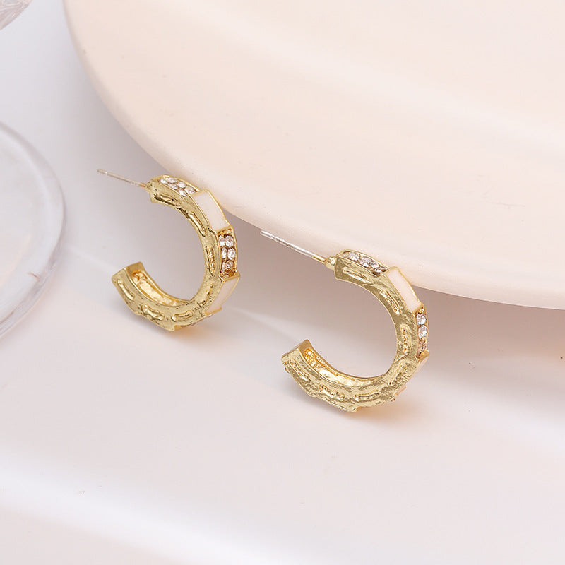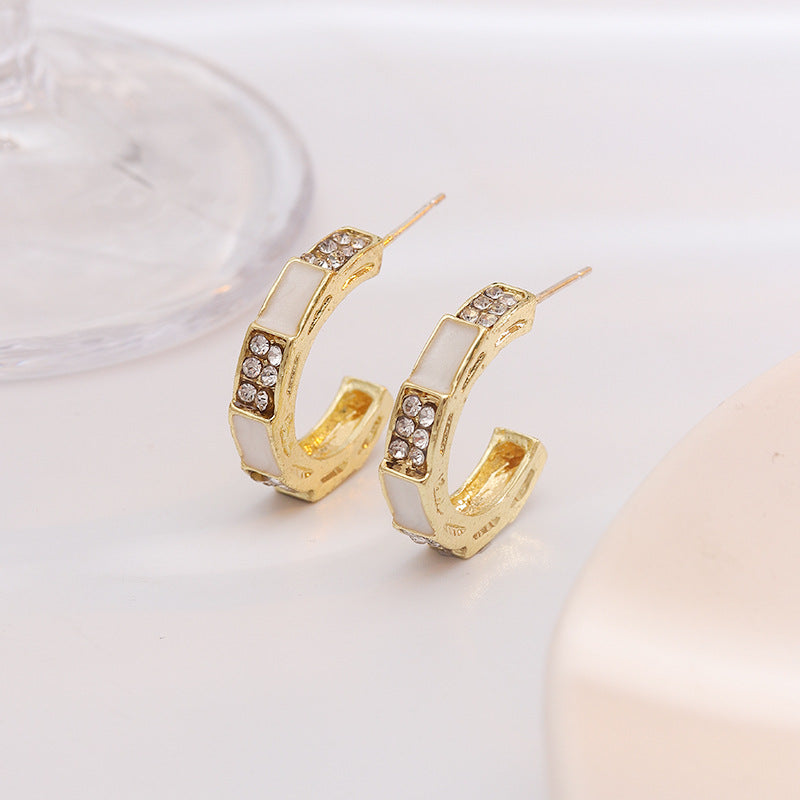 S925 Silver Needle Vintage Metal Earrings C-shaped Rhinestone Earrings