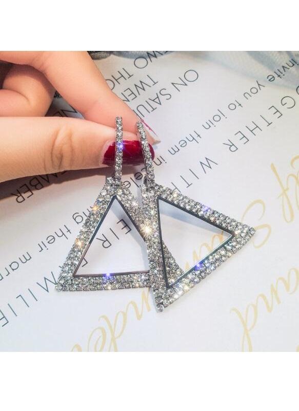 S925 silver pin earrings personalized geometric triangle diamond earrings