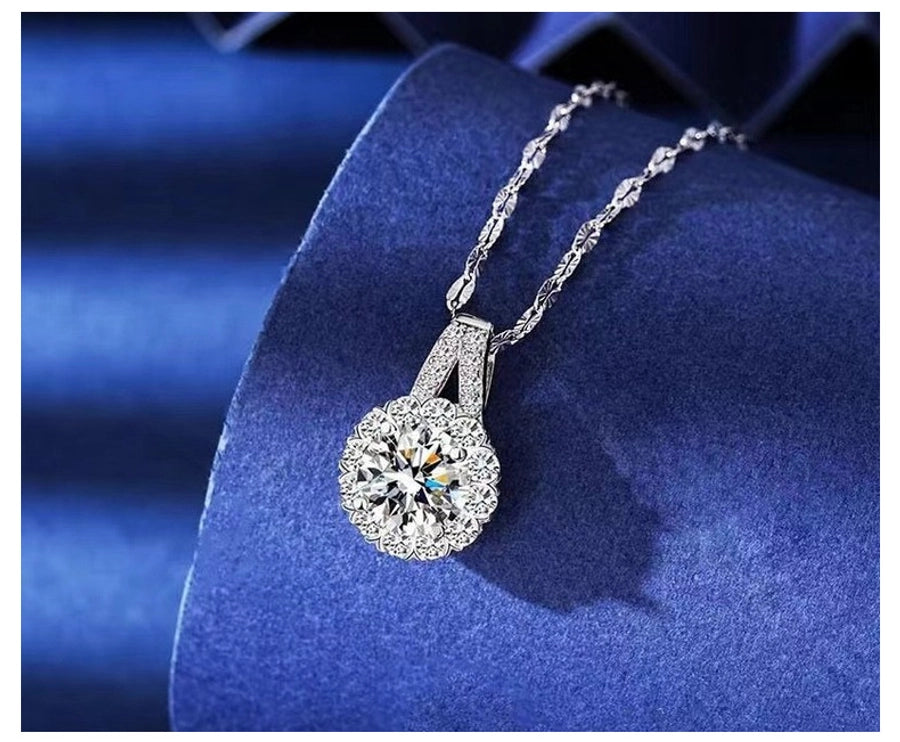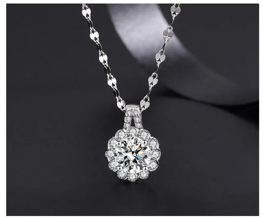 S925 Sterling Silver Light Luxury Moissanite Necklace Female TikTok Sunflower Clavicle Chain Niche Design