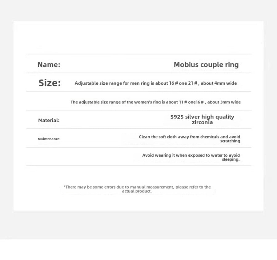 s925 Sterling Silver Mobius Couple Ring Fashion Personality Niche Design Plain Ring Ring
