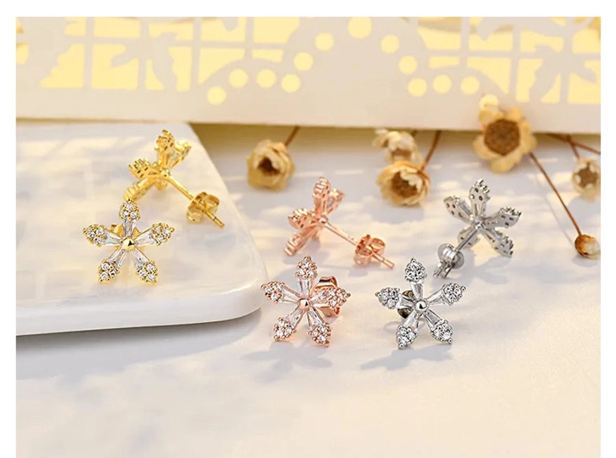 S925 Sterling Silver Needle Floret Zircon Earrings for Women Simple Small Cute Fresh Style Mori Style Sweet Elegant Earrings