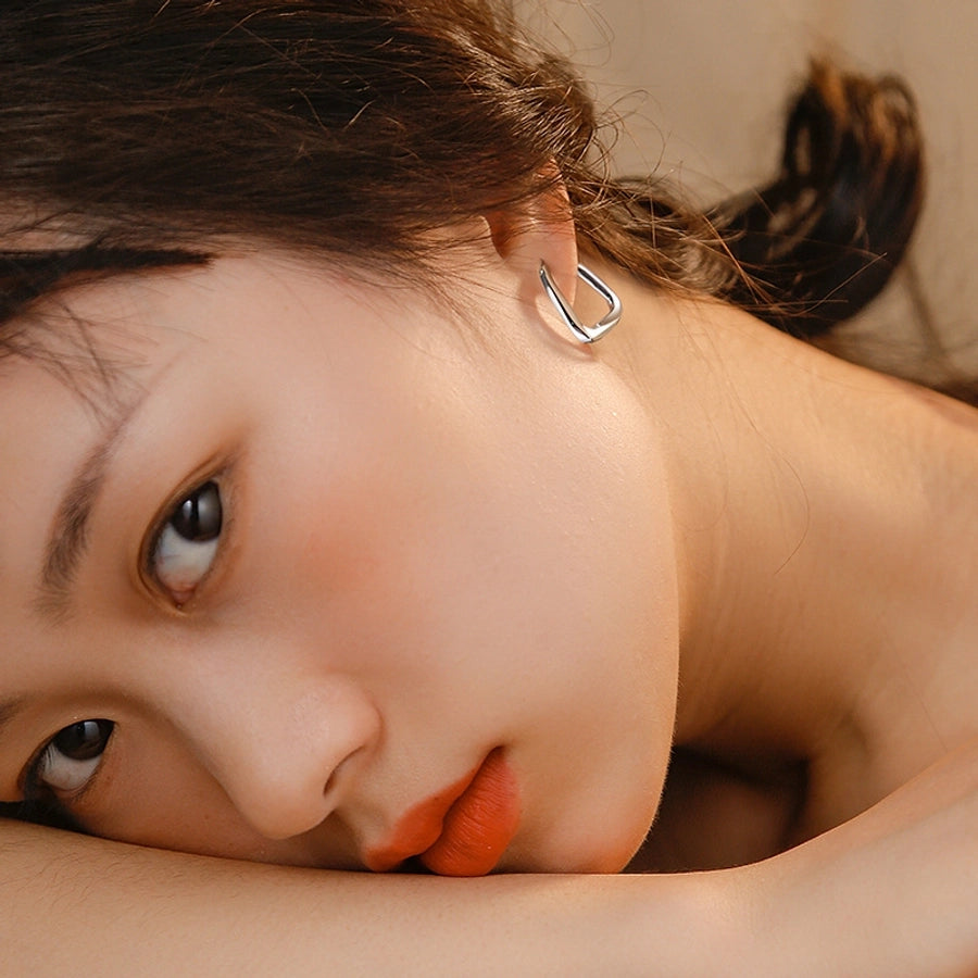 s925 Sterling Silver Square Ear Buckle New Earrings High Sense Earrings Korean Elegant Internet Popular Earrings Women's New Earrings