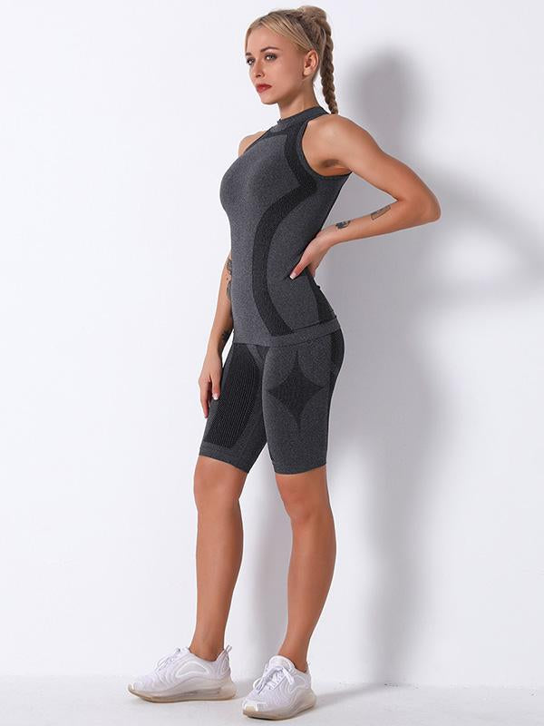 Seamless Knitting Breathable High Collar Short Gym Suit
