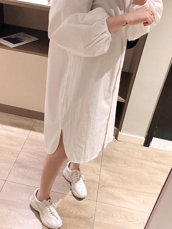See-through Loose Solid Bloomers Shirt Mini Dresses