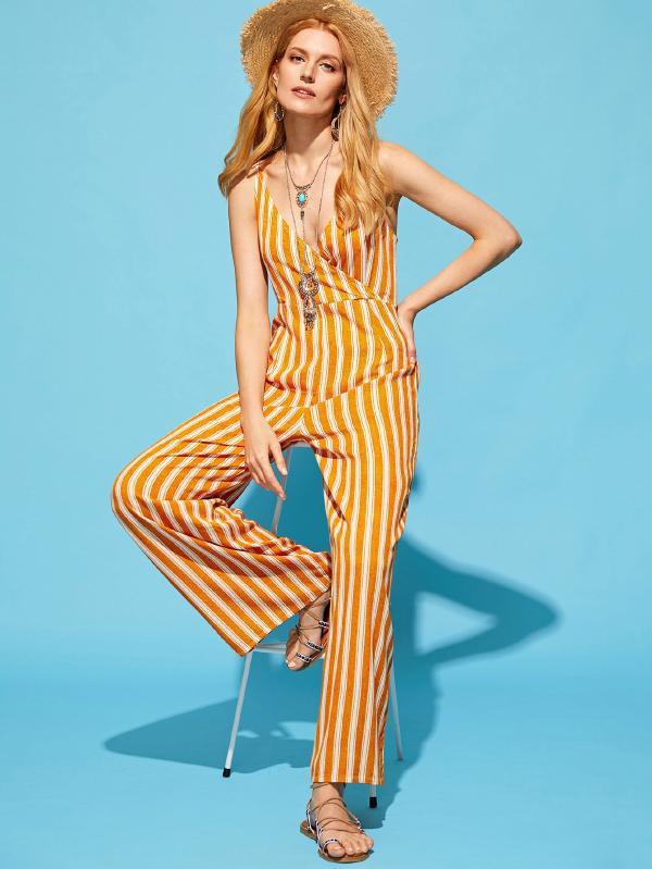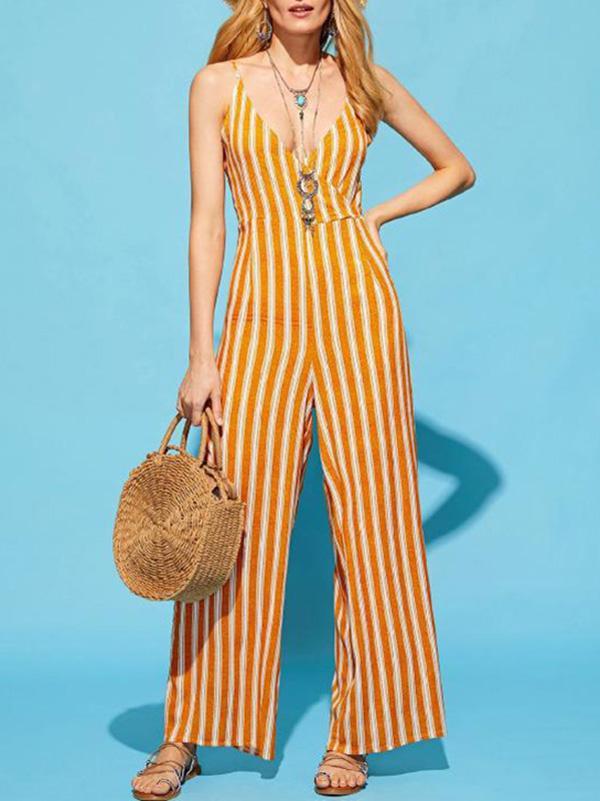 Sexy Backless Stripes Loose Spaghetti Jumpsuit