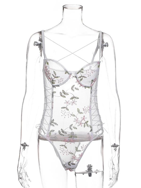 Sexy Bandage Embroidered Split-Joint Bodysuit Lingerie