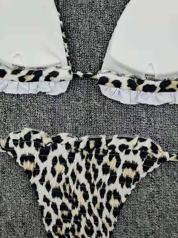 Sexy Bandage Tai Lam Ruffled Triangles Split Type Bikini Swimsuit
