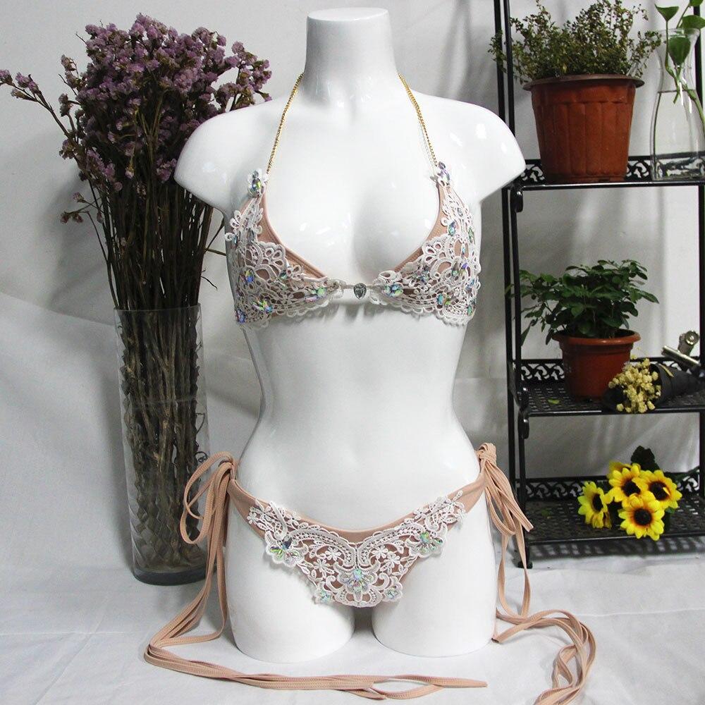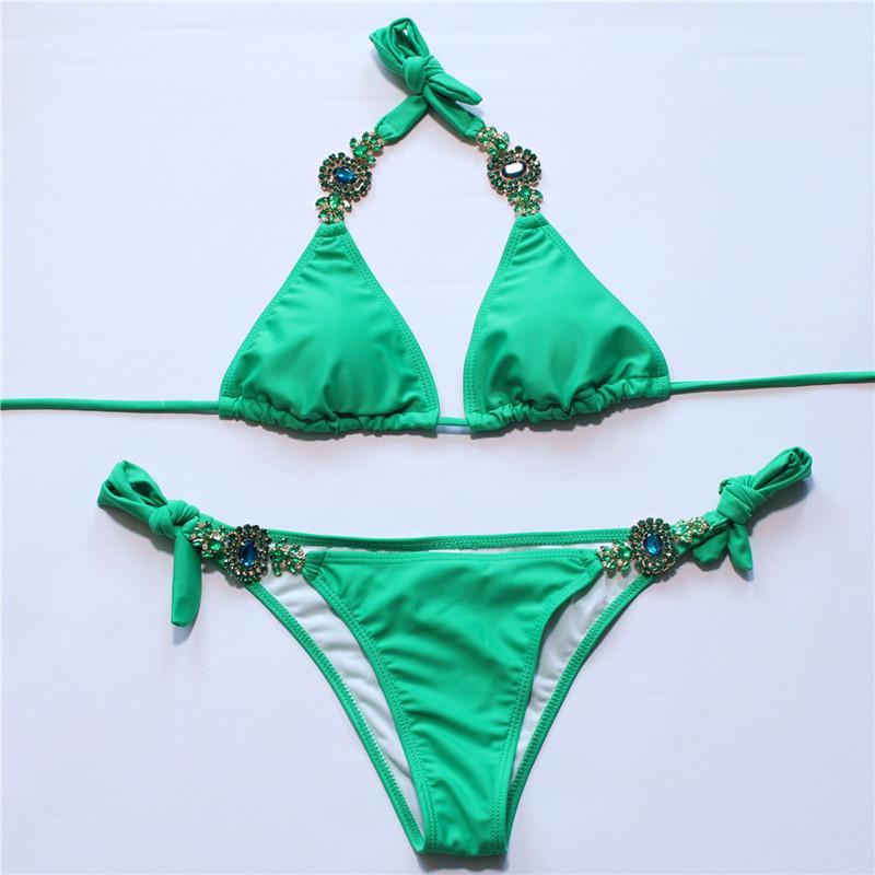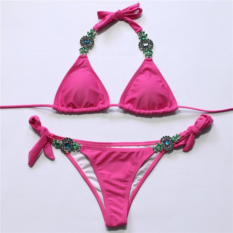 Sexy Brazilian Bikini Luxury Crystal Swimsuit Women's Swimming Bandage Lace Halter Bathing Suit Beachwear Swimwear