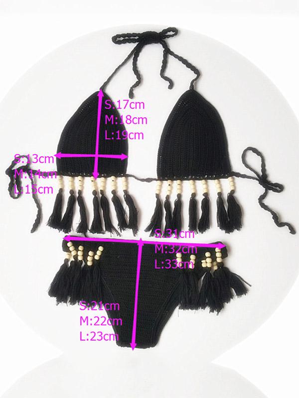 Sexy Halterneck Knitting Tassels Two-Pieces Bikini Swimwear