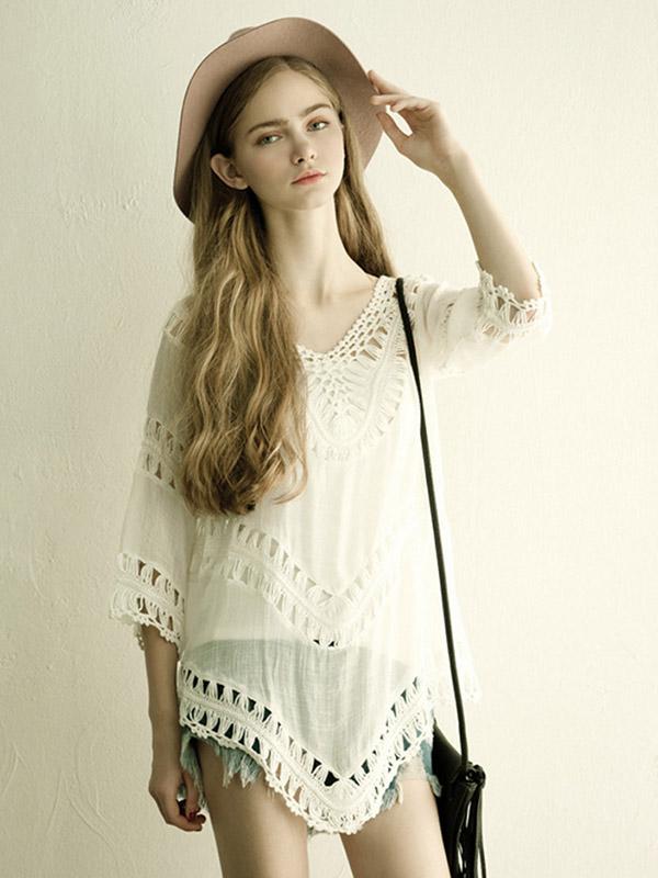 Sexy Hollow Short Sleeves Cover-Ups Swimwear