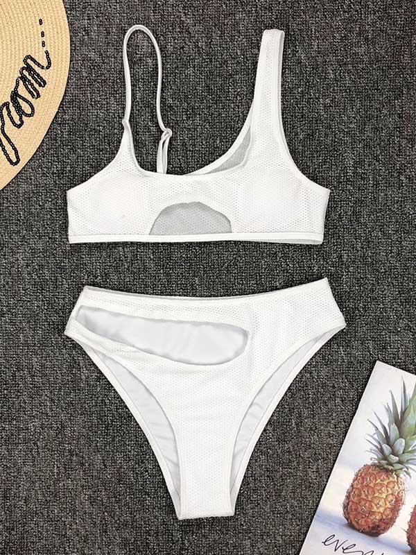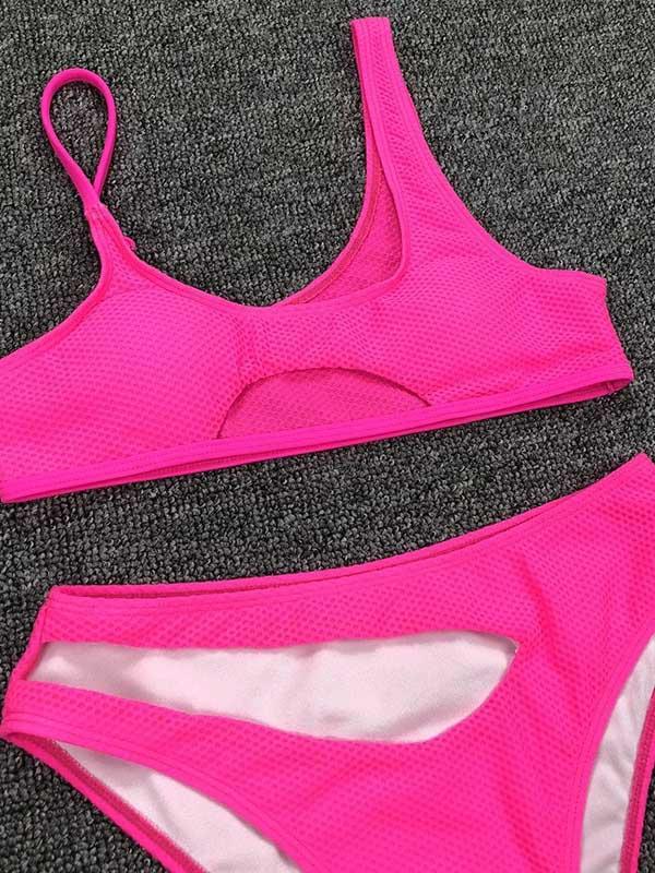 Sexy Irregular Backless Grid Split Type Bikini Swimsuit