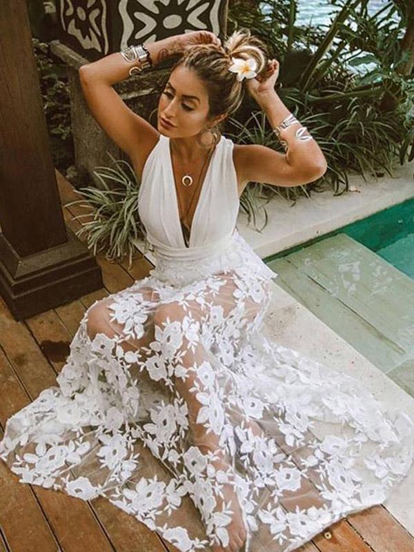 Sexy Lace Deep V-neck Maxi Dresses