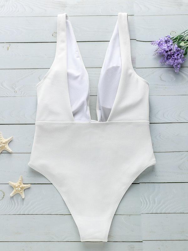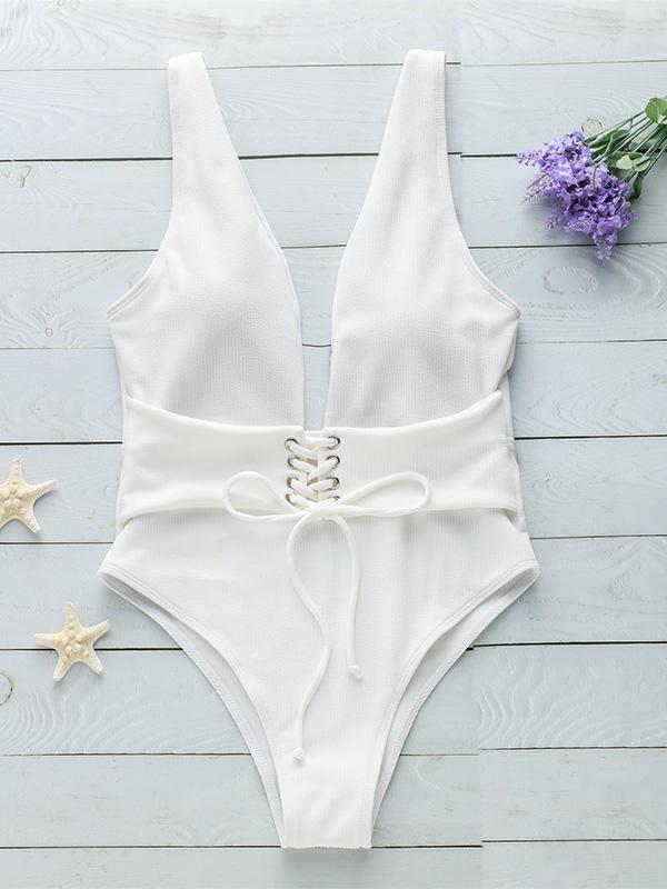 Sexy Plain Tied Front One-piece Swimwear