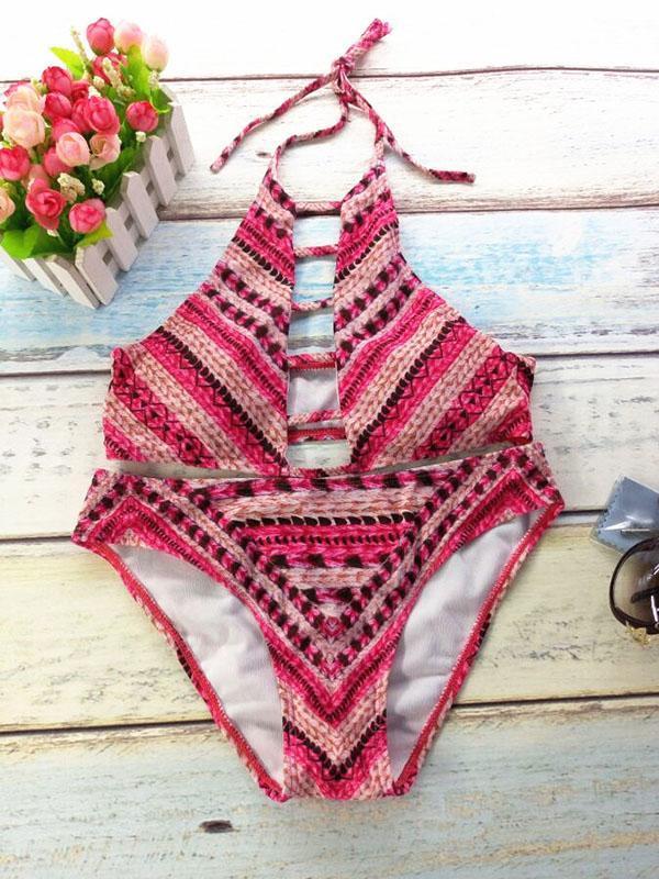 Sexy Red Halterneck Two-Pieces Bikini Swimwear