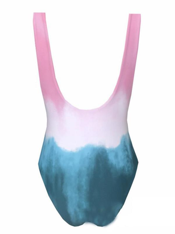 Sexy Round Collar Fade Color One-Piece Swimwear