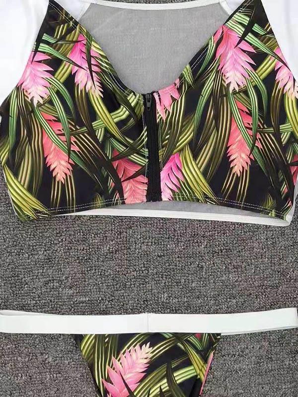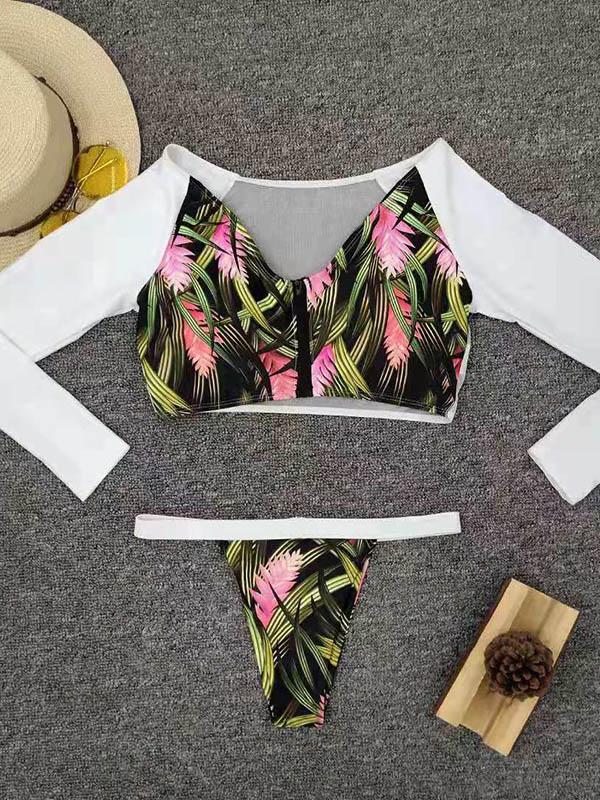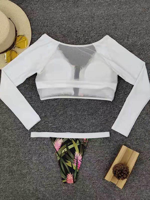 Sexy Round Collar Piece Long Sleeves Split Bikini Swimsuit