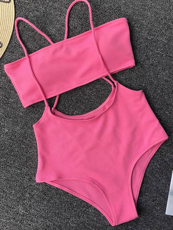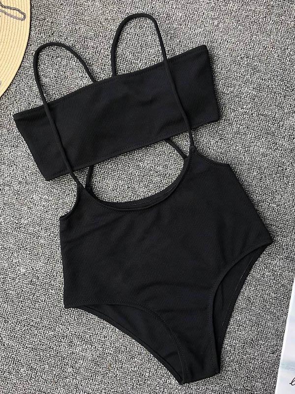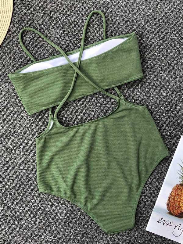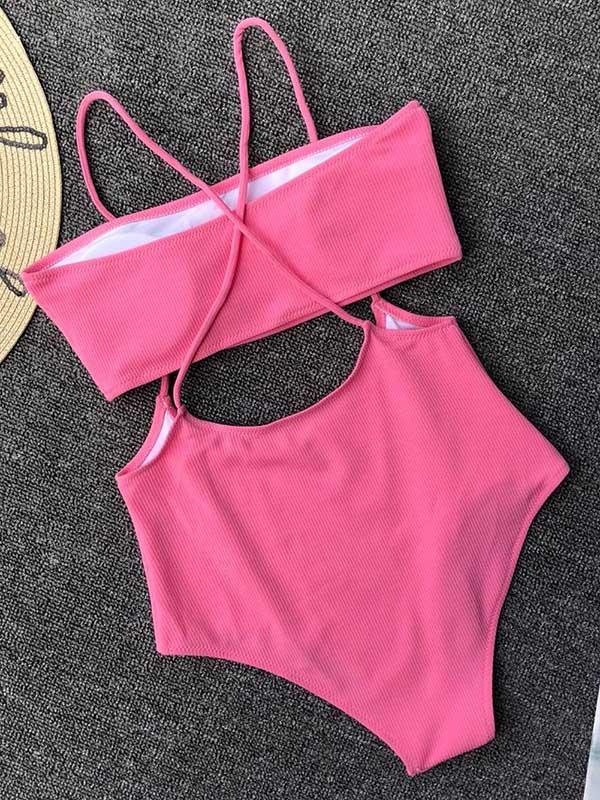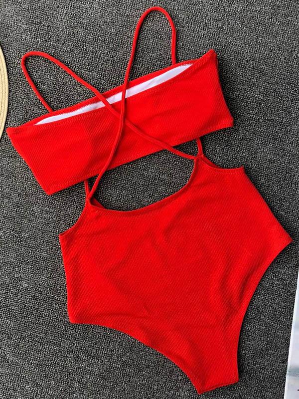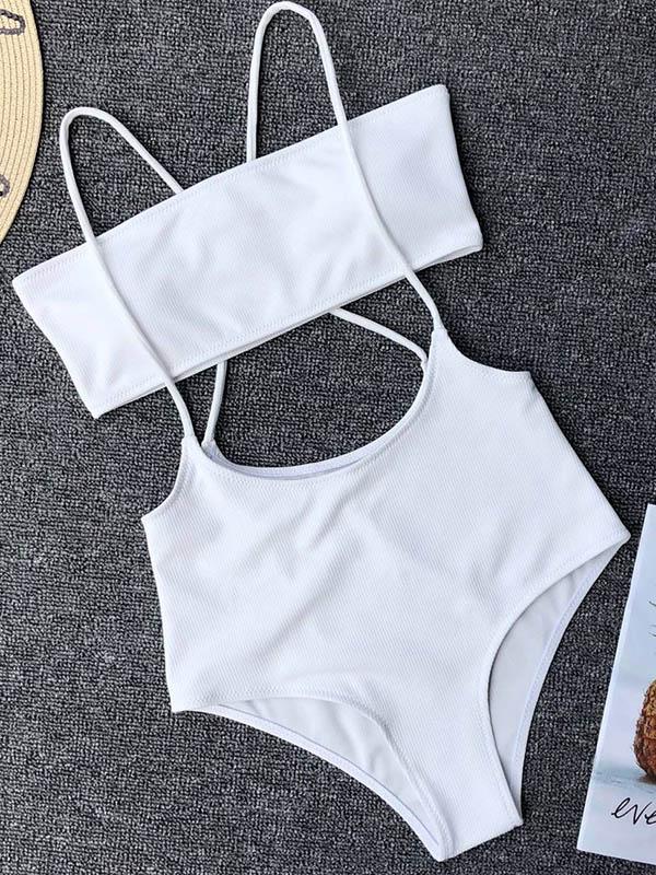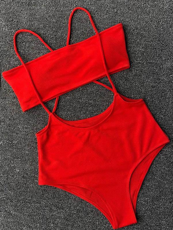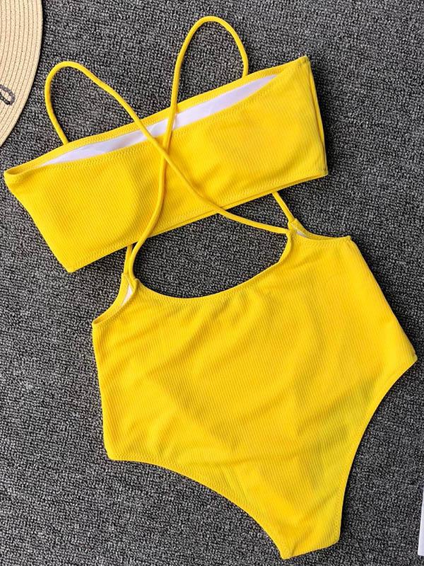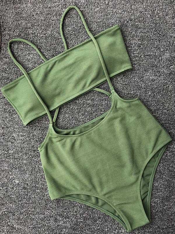 Sexy Solid Cropped Spaghetti-Neck Bikini