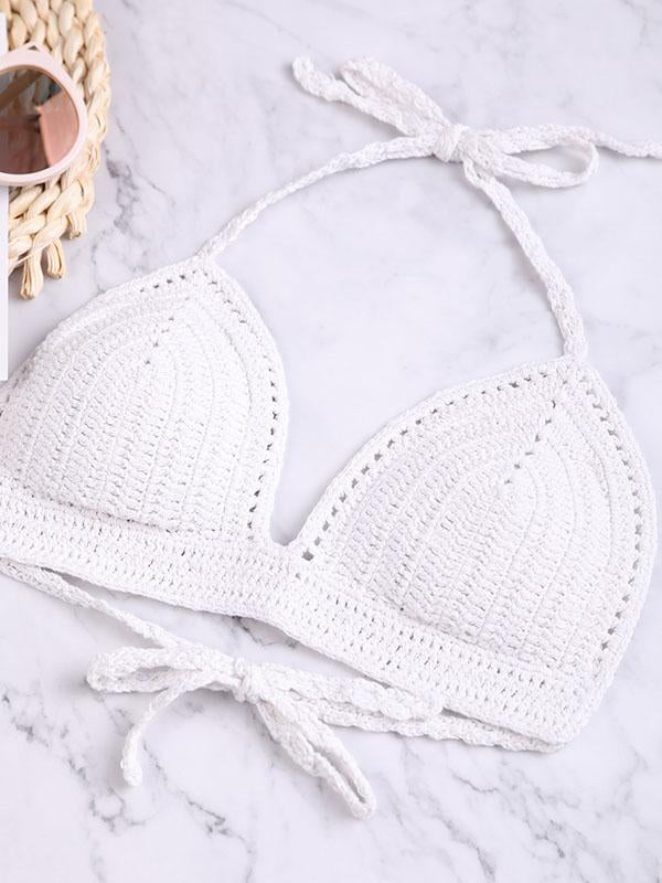 Sexy Spaghetti-Neck Backless Hand Crochet Bikini Swimsuit