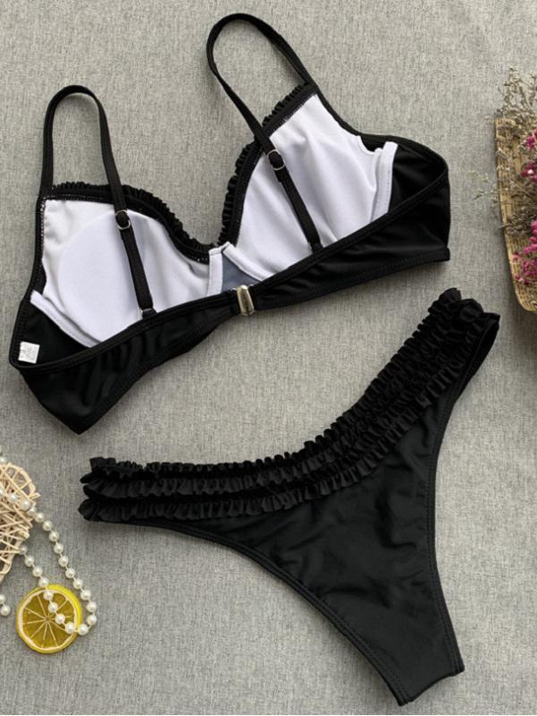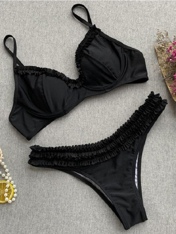 Sexy Spaghetti-Neck Lace Solid Color Steel-Belted Bikini